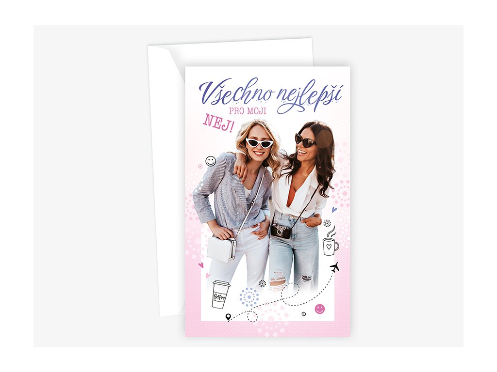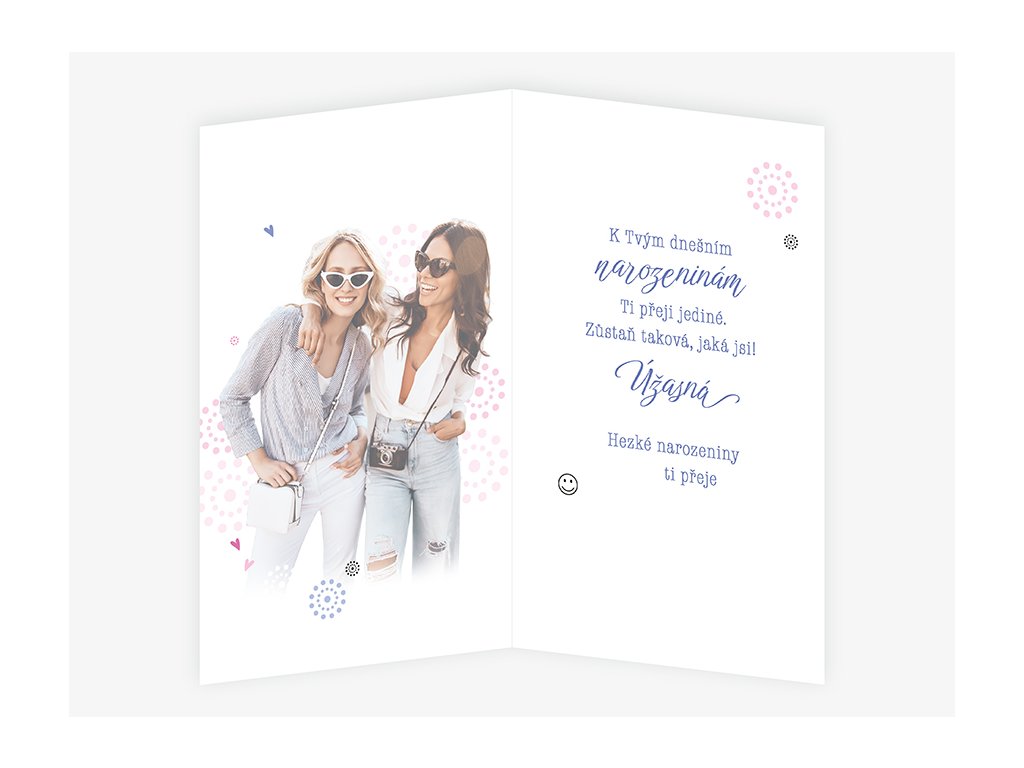 Text uvnitř: K Tvým dnešním narozeninám si přeji jediné. Zůstaň taková, jaká jsi! Úžasná. Hezké narozeniny ti přeje