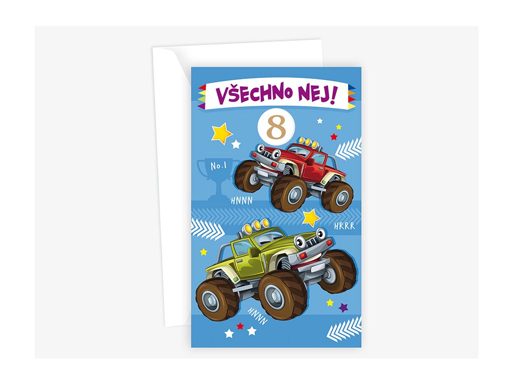 Srdečné blahopřání pro děti s výběrem roků a textem uvnitř přání. Součástí blahopřání je bílá obálka.