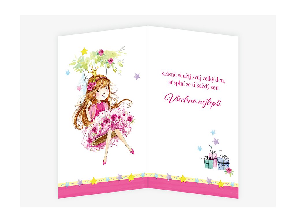 Text uvnitř: Krásně si užij svůj velký den, ať splní se ti každý sen. Všechno nejlepší
