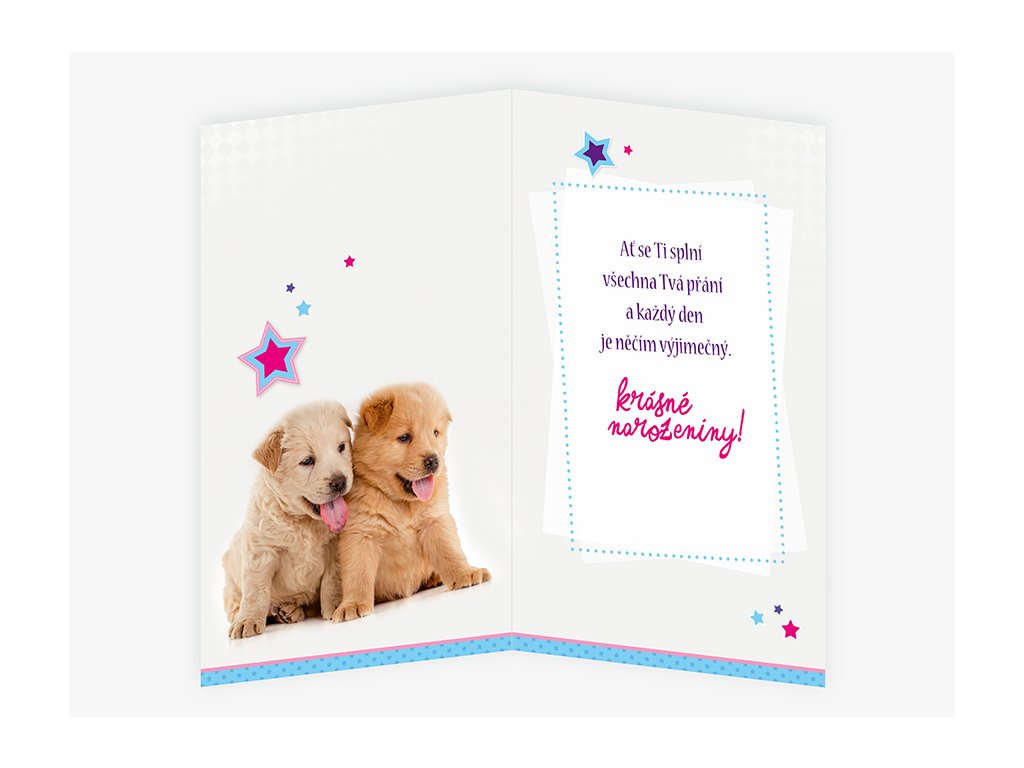 Text uvnitř: Ať se Ti splní všechna Tvá přání a každý den je něčím výjimečný. Krásné narozeniny!