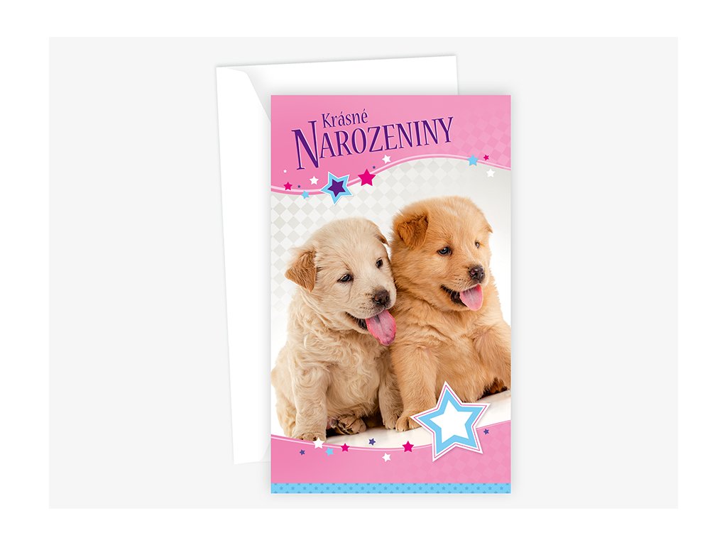 Srdečné blahopřání pro děti s textem uvnitř přání. Součástí blahopřání je bílá obálka.