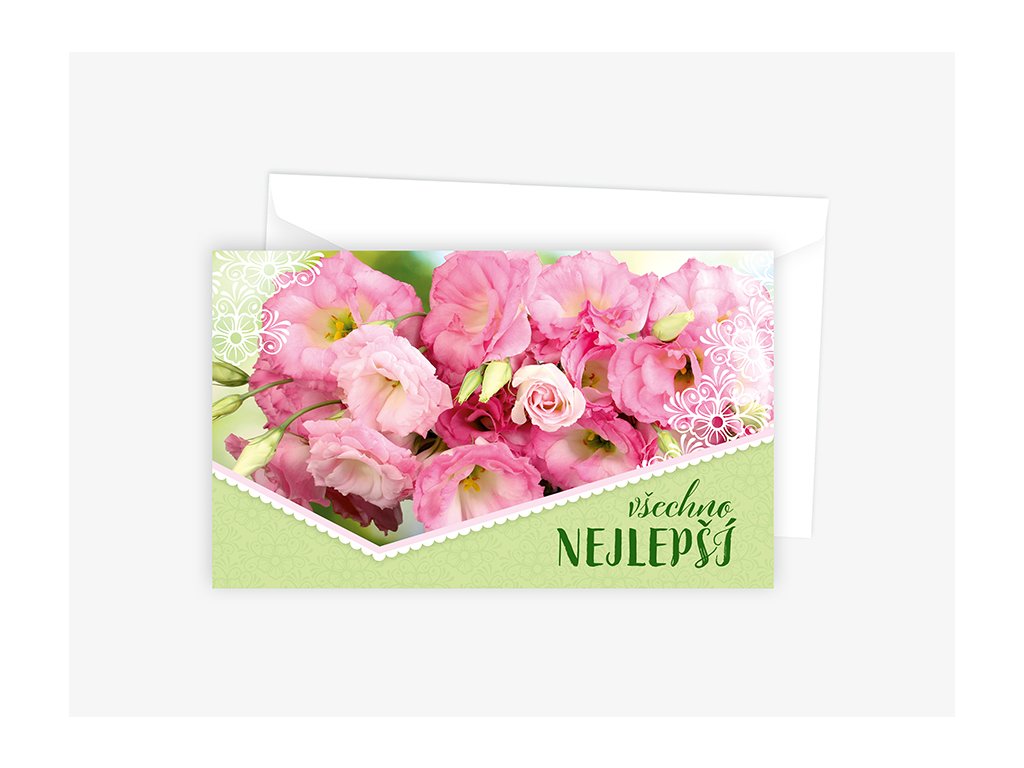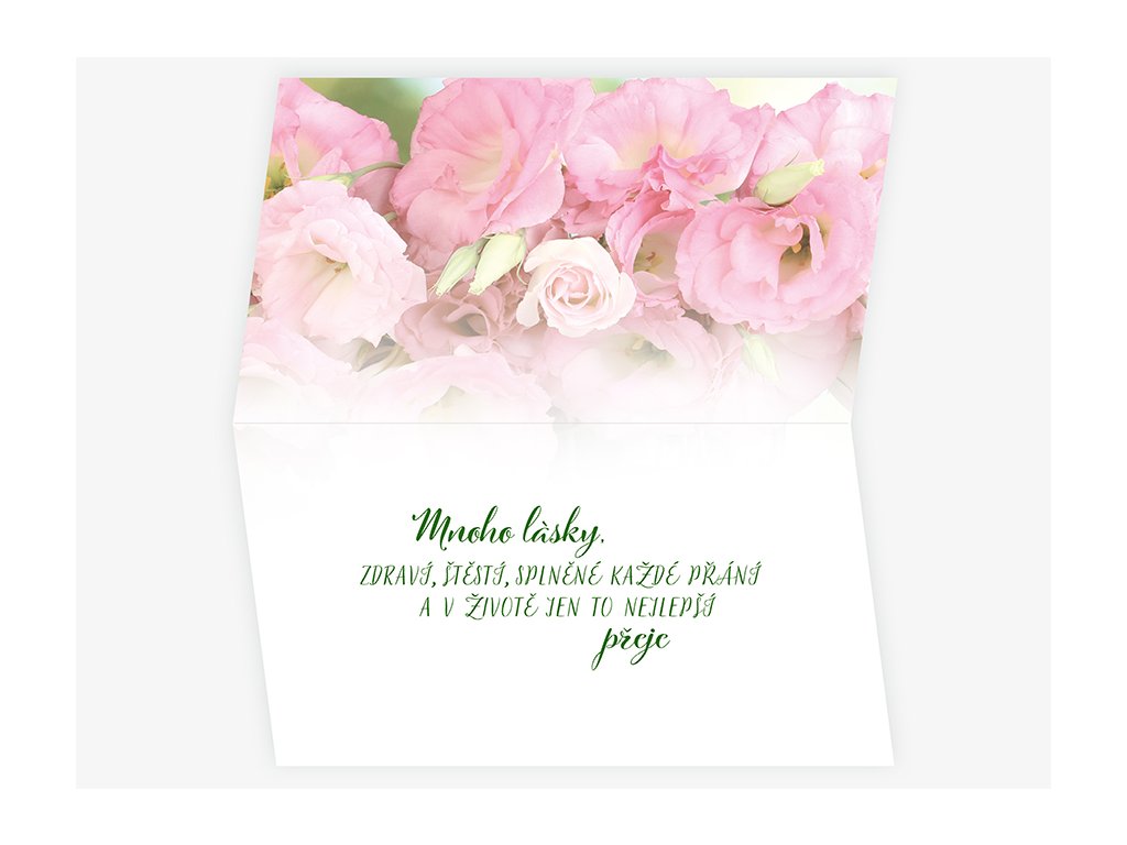 Text uvnitř: Mnoho lásky, zdraví, štěstí, splněné každé přání a v životě jen to nejlepší přeje