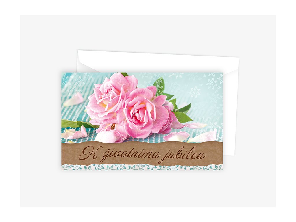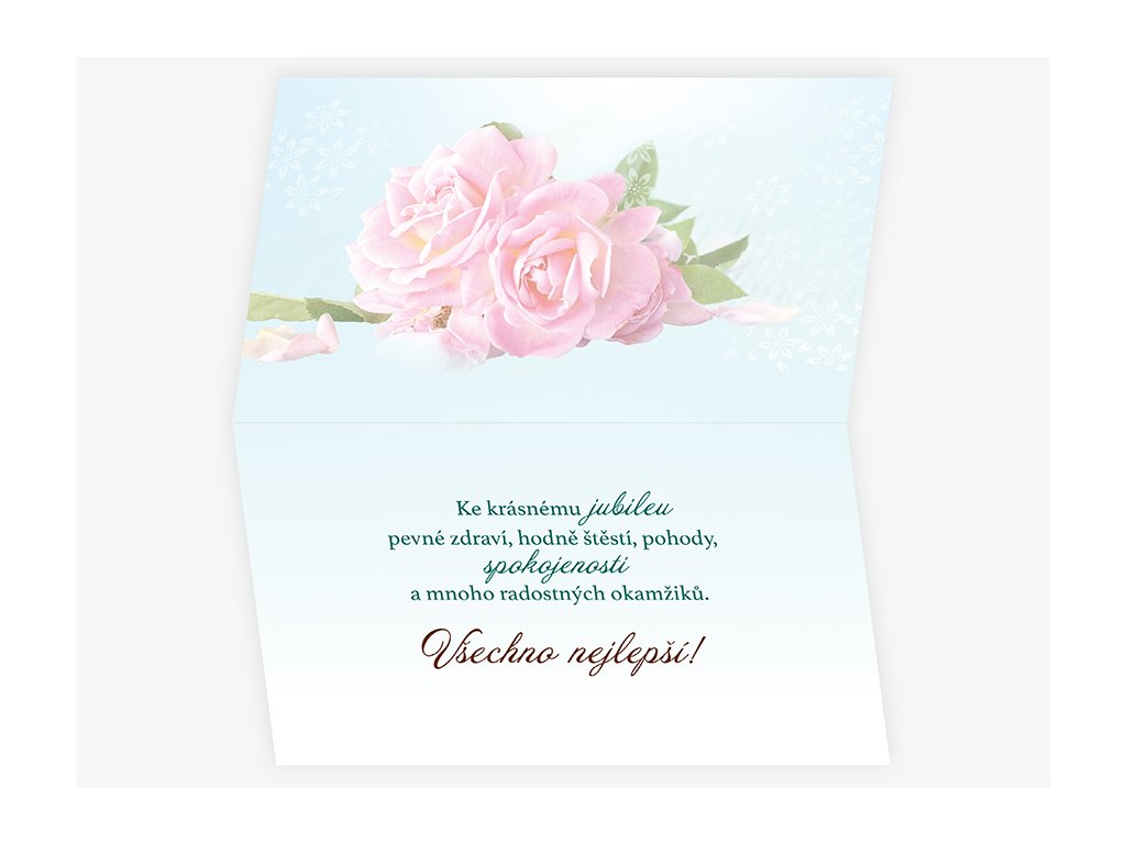 Text uvnitř: Ke krásnému jubileu pevné zdraví, hodně štěstí, pohody, spokojenosti a mnoho radostných okamžiků. Všechno nejlepší!