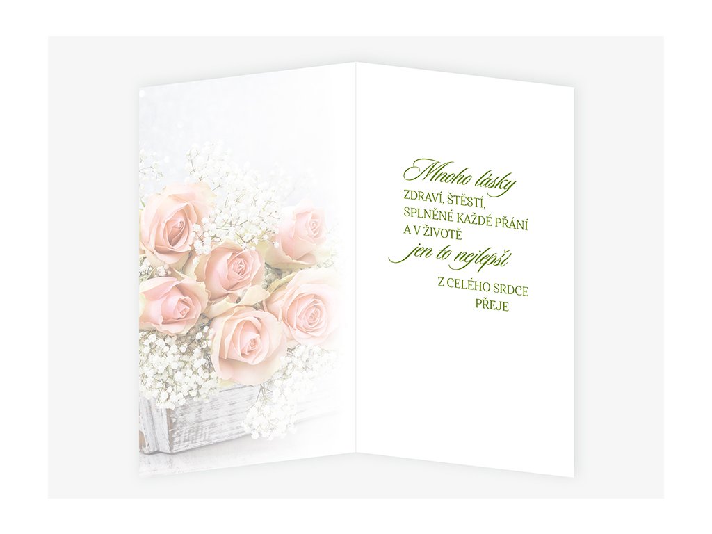 Text uvnitř: Všechno nejlepší. Hodně lásky, pohody, spokojenosti, dobrého zdraví a krásných dní v životě ze srdce přeje