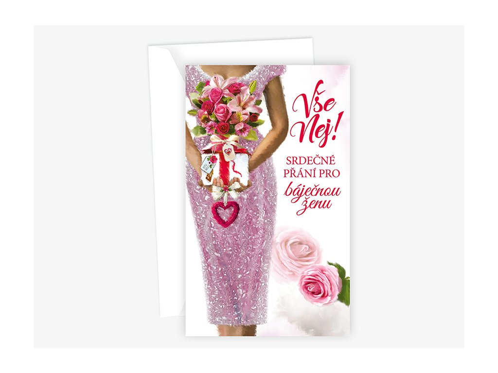 Srdečné blahopřání s textem uvnitř přání. Součástí blahopřání je bílá obálka.