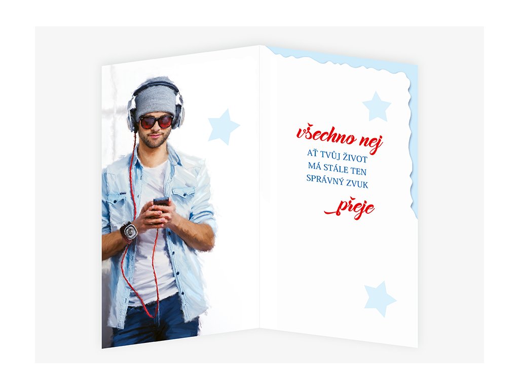 Text uvnitř: Všechno nej. Ať Tvůj život má stále ten správný zvuk přeje