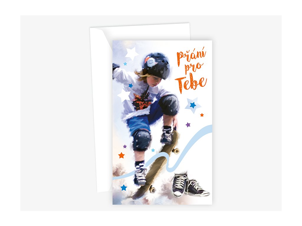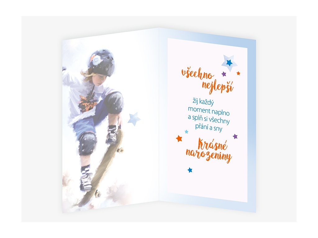 Srdečné blahopřání s textem uvnitř přání. Součástí blahopřání je bílá obálka.