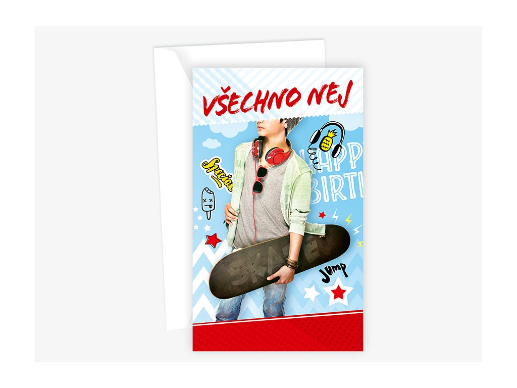 Srdečné blahopřání s textem uvnitř přání. Součástí blahopřání je bílá obálka.