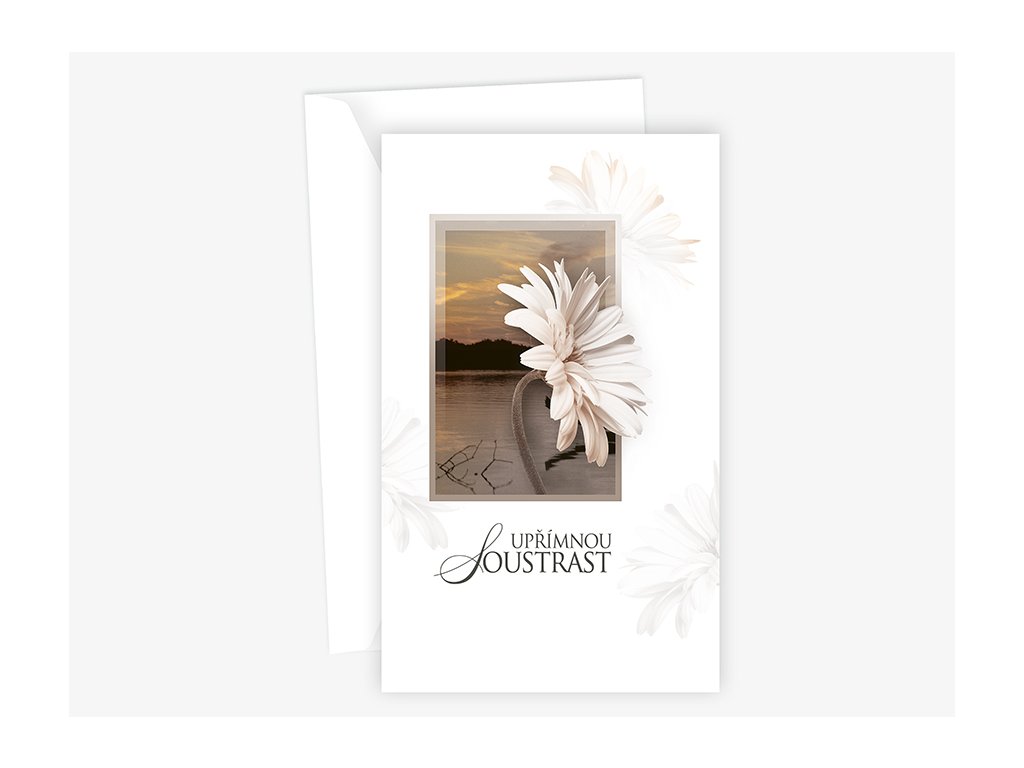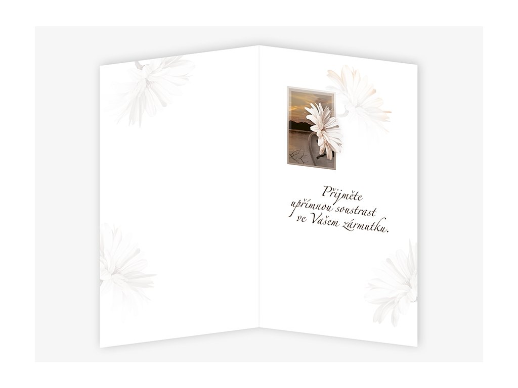 Kondolence, přání úpřímné soustrasti s textem uvnitř přání. Součástí balení je bílá obálka.