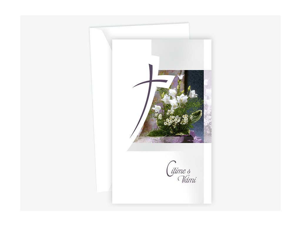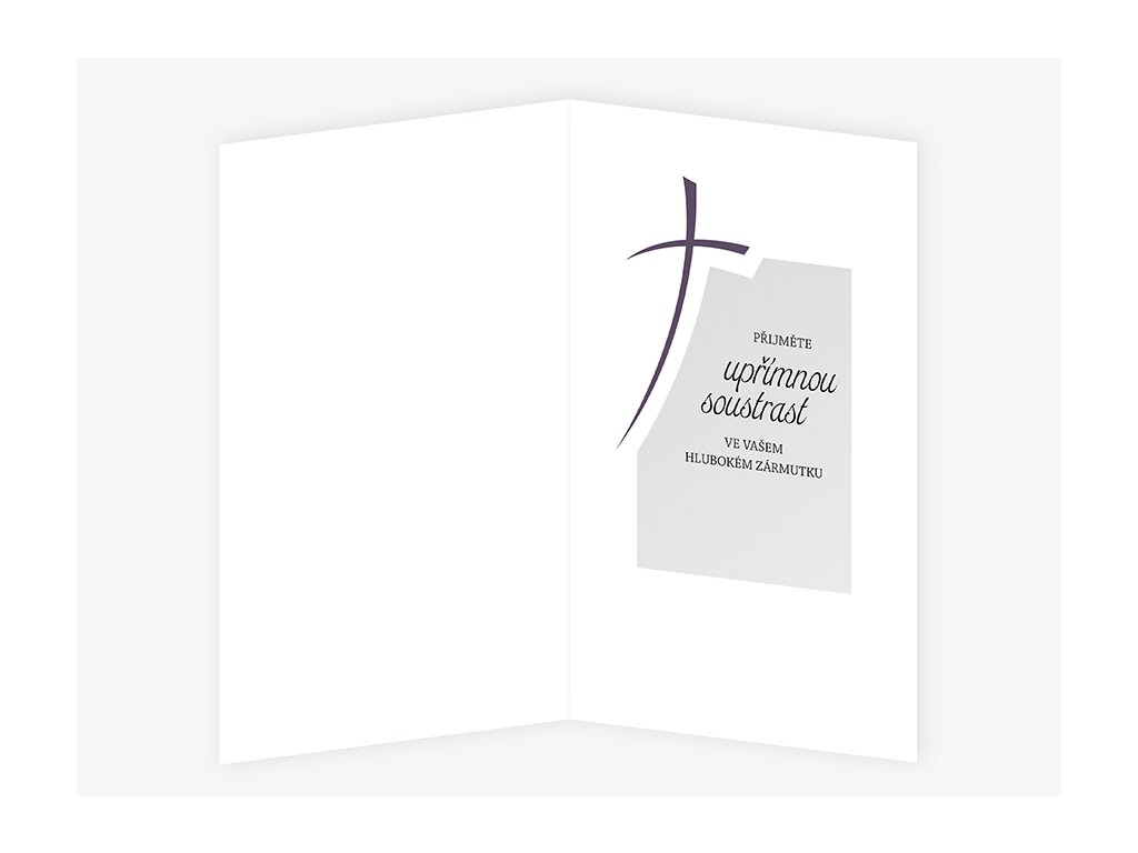Kondolence, přání úpřímné soustrasti s textem uvnitř přání. Součástí balení je bílá obálka.