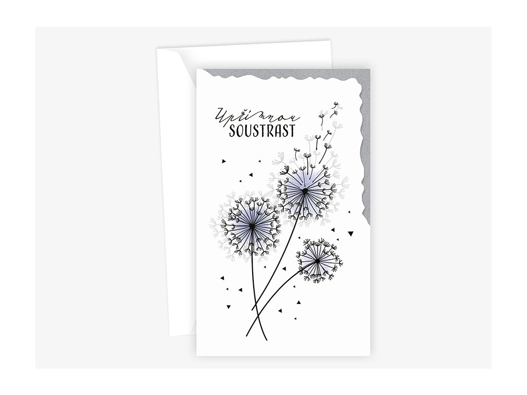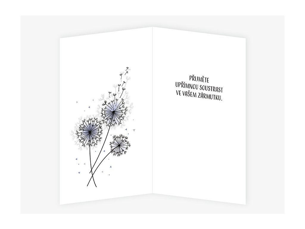 Kondolence, přání úpřímné soustrasti s textem uvnitř přání. Součástí balení je bílá obálka.