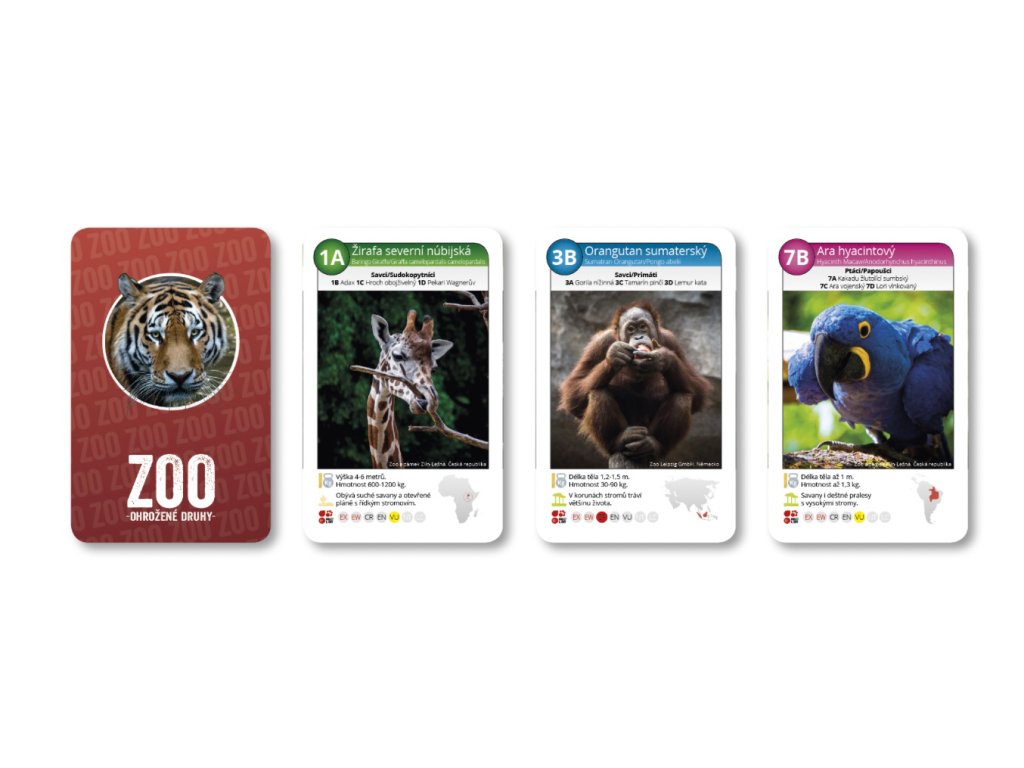 KVARTETO ZOO ohrožené druhy - kvarteto s fotkami ohrožených druhů zvířat. Na kartě naleznete o každém zvířeti spoustu informací. Autorem fotek je Josef Válek.