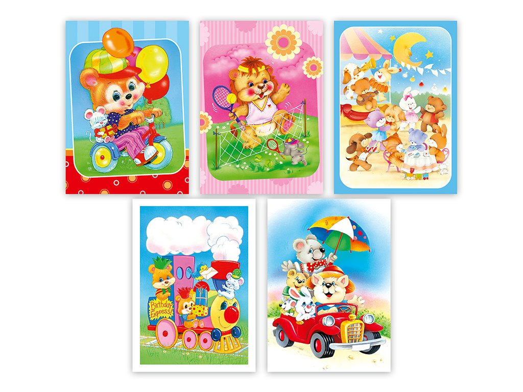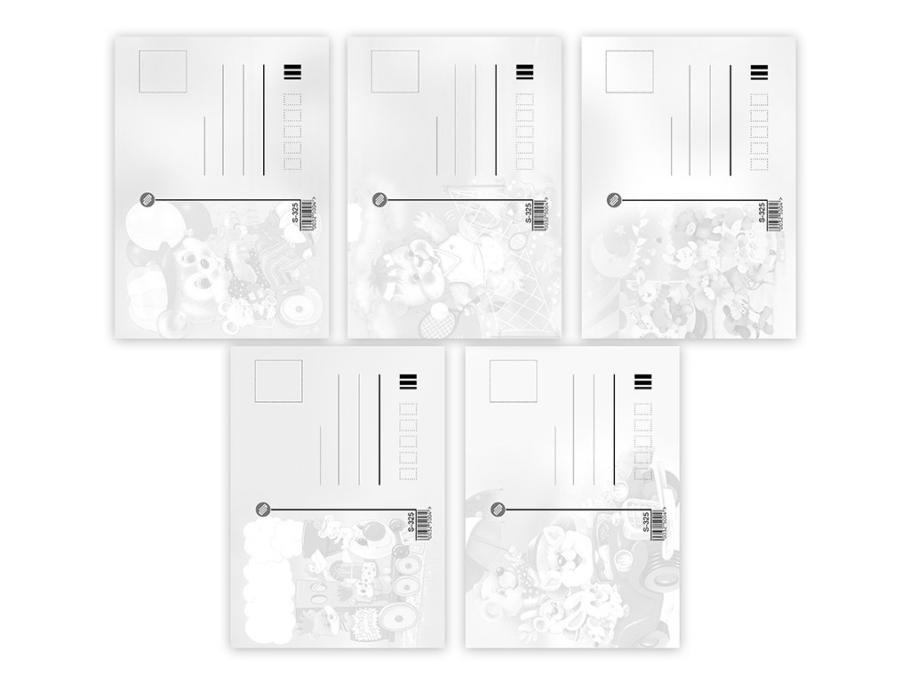Pohlednice s dětským motivem bez textu na zadní straně. Bez obálky.