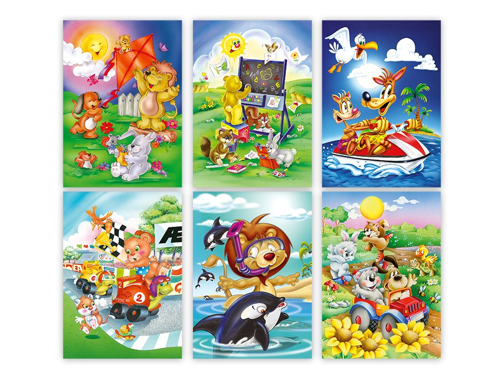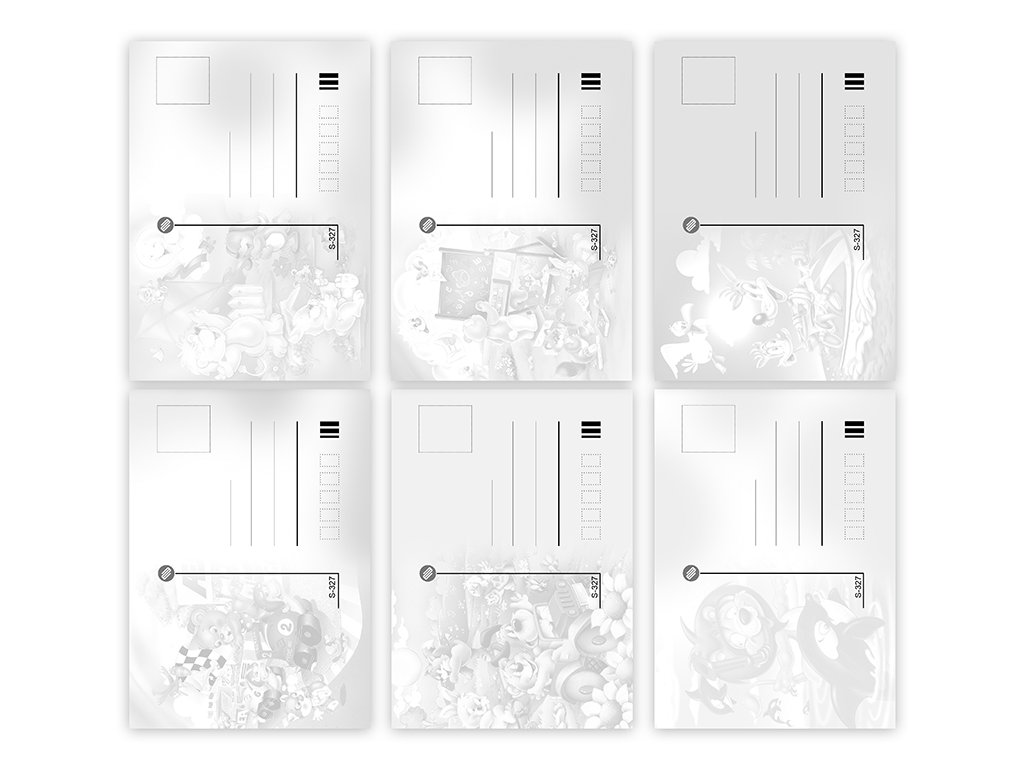 Pohlednice s dětským motivem bez textu na zadní straně. Bez obálky.