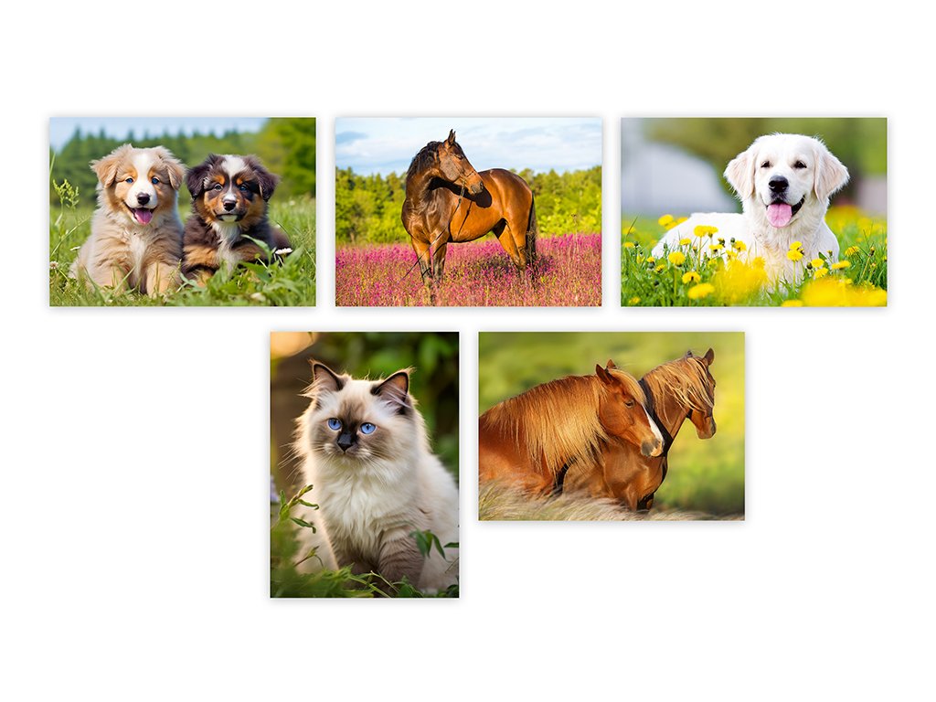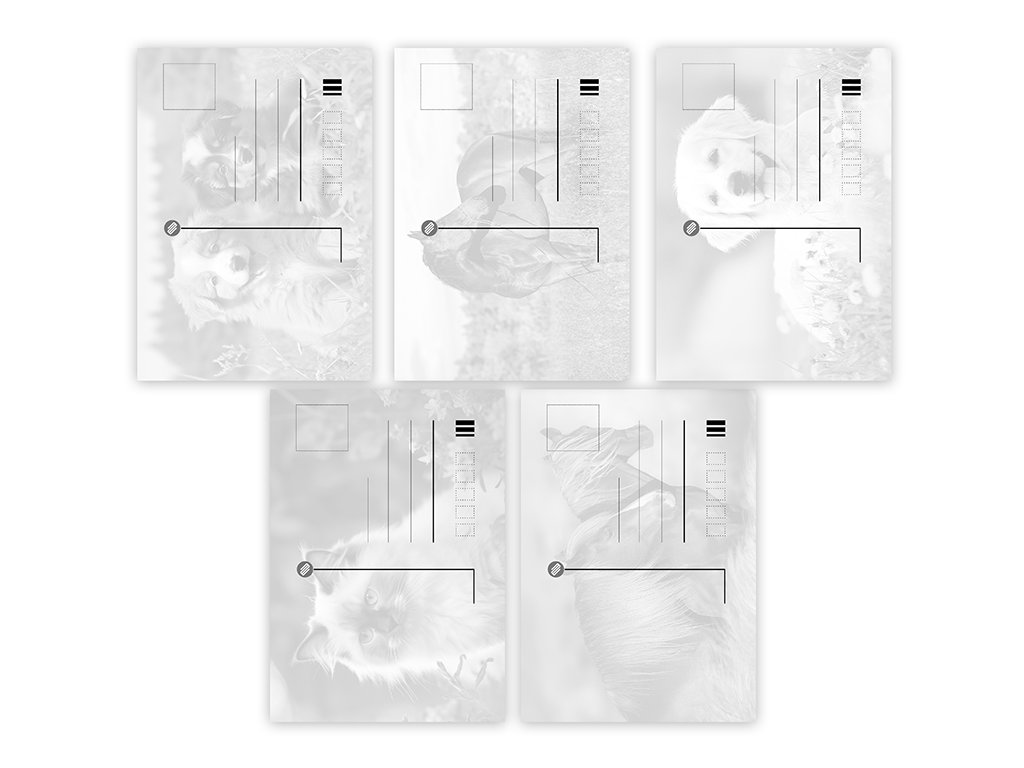 Pohlednice s motivem zvířat bez textu na zadní straně. Bez obálky.