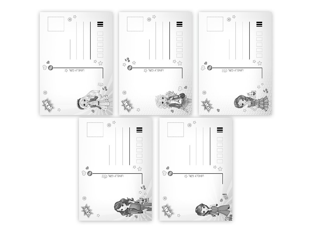 Pohlednice s dětským motivem bez textu na zadní straně. Bez obálky.
