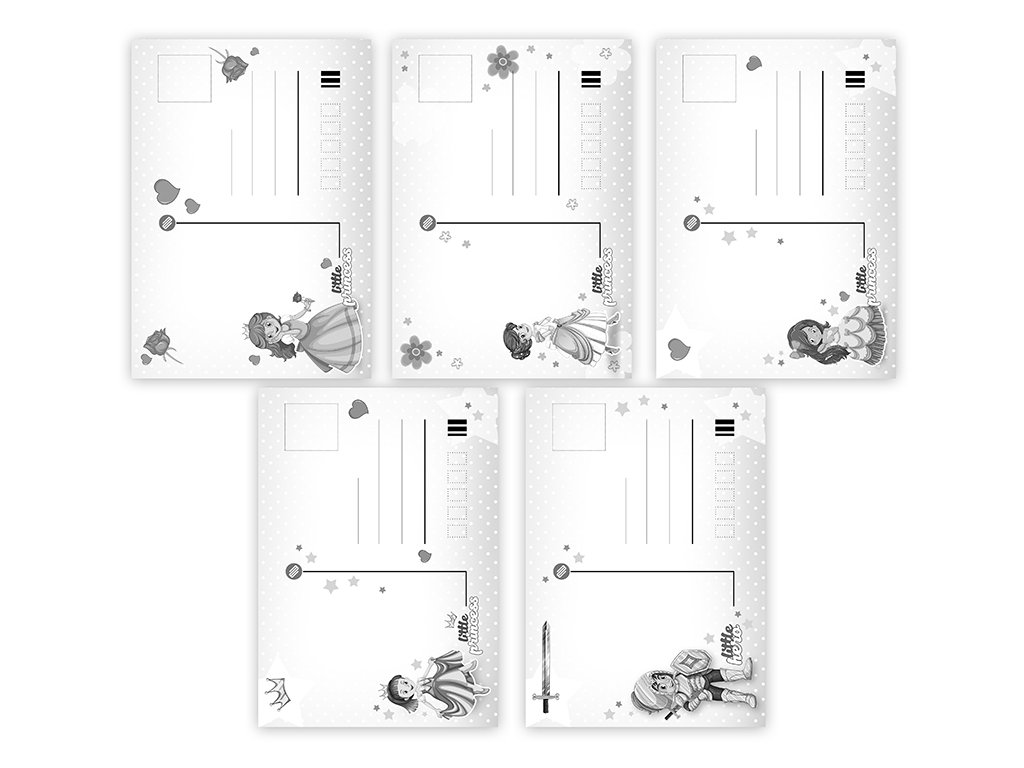 Pohlednice s dětským motivem bez textu na zadní straně. Bez obálky.