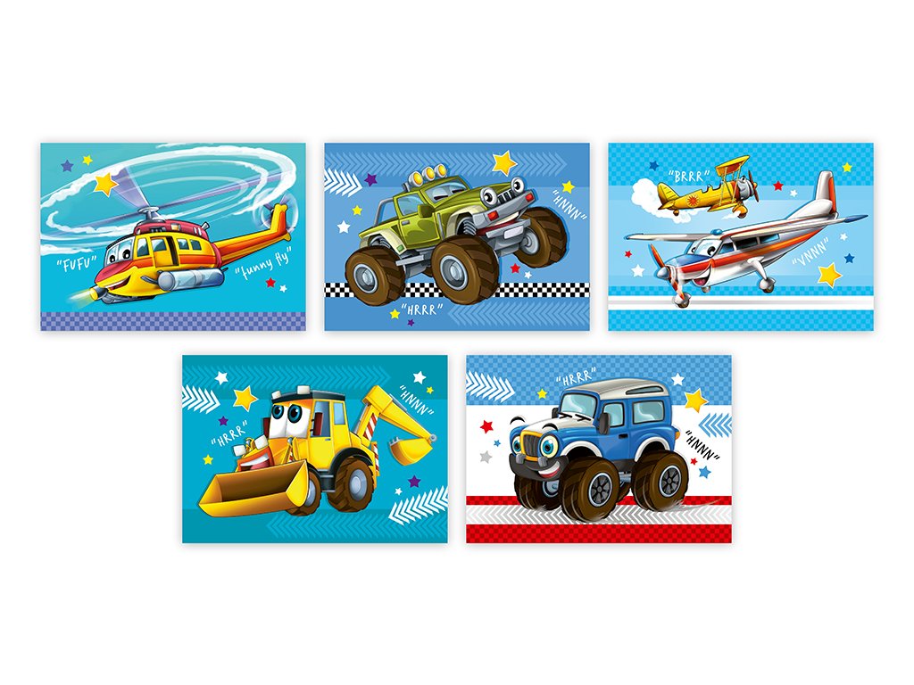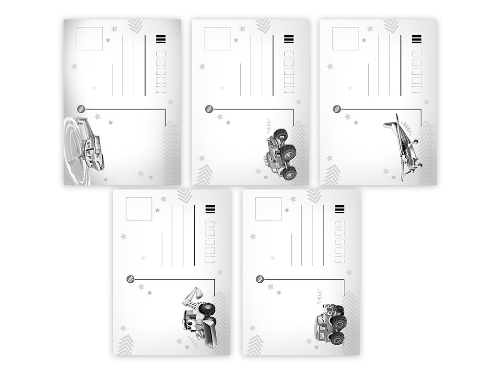 Pohlednice s dětským motivem bez textu na zadní straně. Bez obálky.