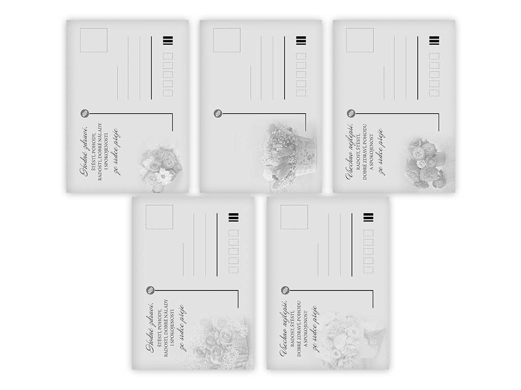 Pohlednice srdečné s textem i bez textu na zadní straně. Bez obálky.
