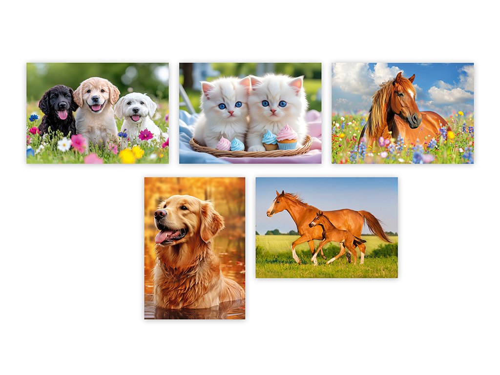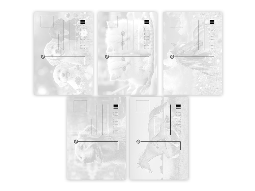 Pohlednice s motivem zvířat bez textu na zadní straně. Bez obálky.