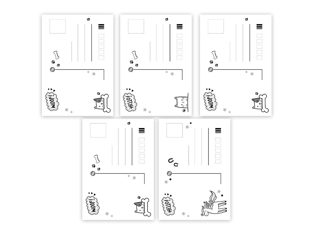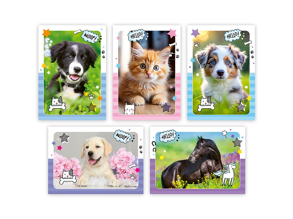 Pohlednice s motivem zvířat bez textu na zadní straně. Bez obálky.