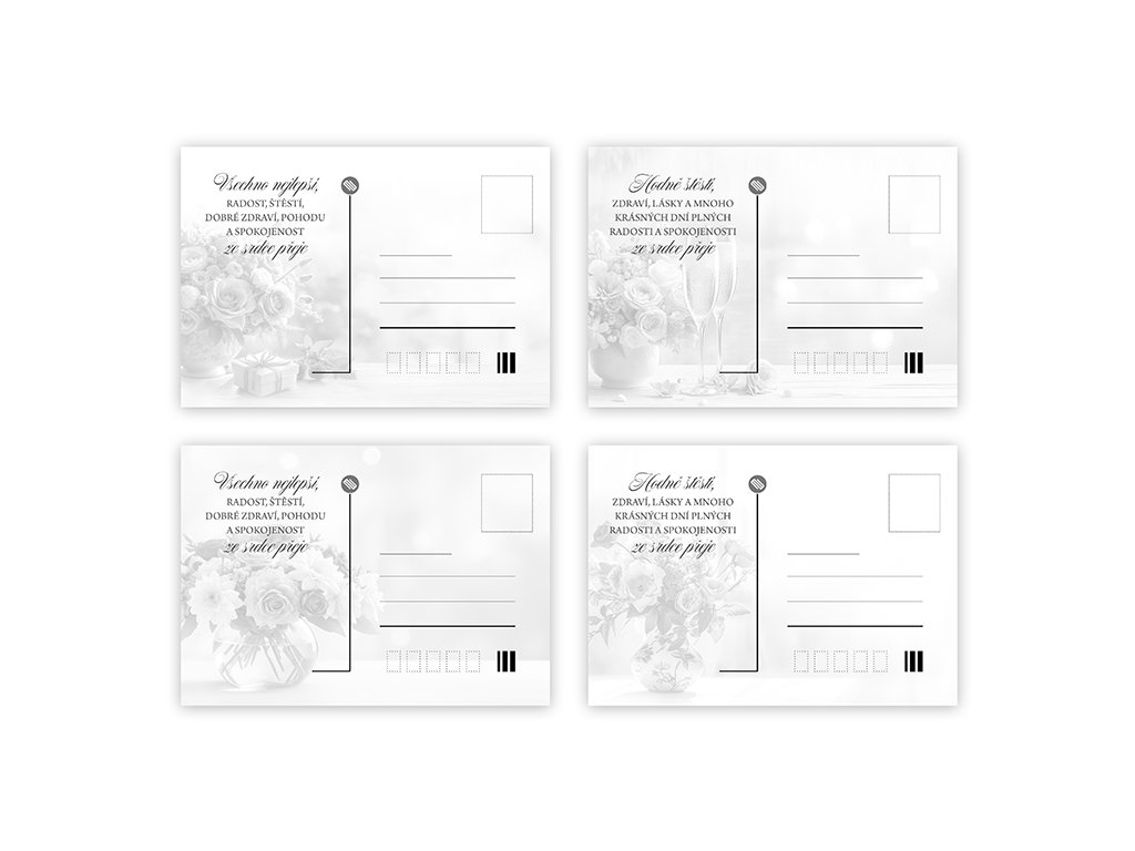 Pohlednice srdečné s textem na zadní straně. Bez obálky.