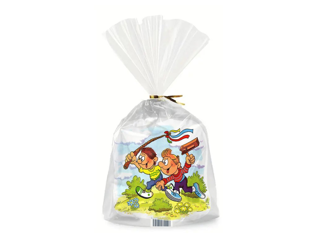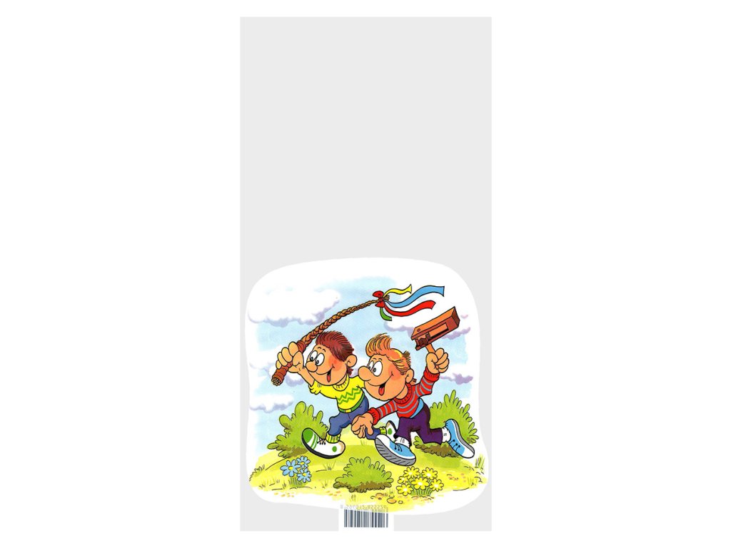 Z přední strany je motiv kluků a z druhé strany je velikonoční sáček čirý.