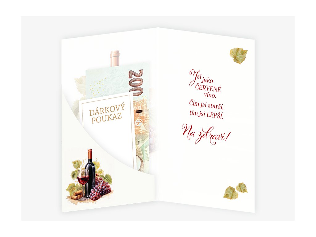 Text uvnitř: Jsi jako červené víno. Čím jsi starší, tím jsi lepší. Na zdraví!