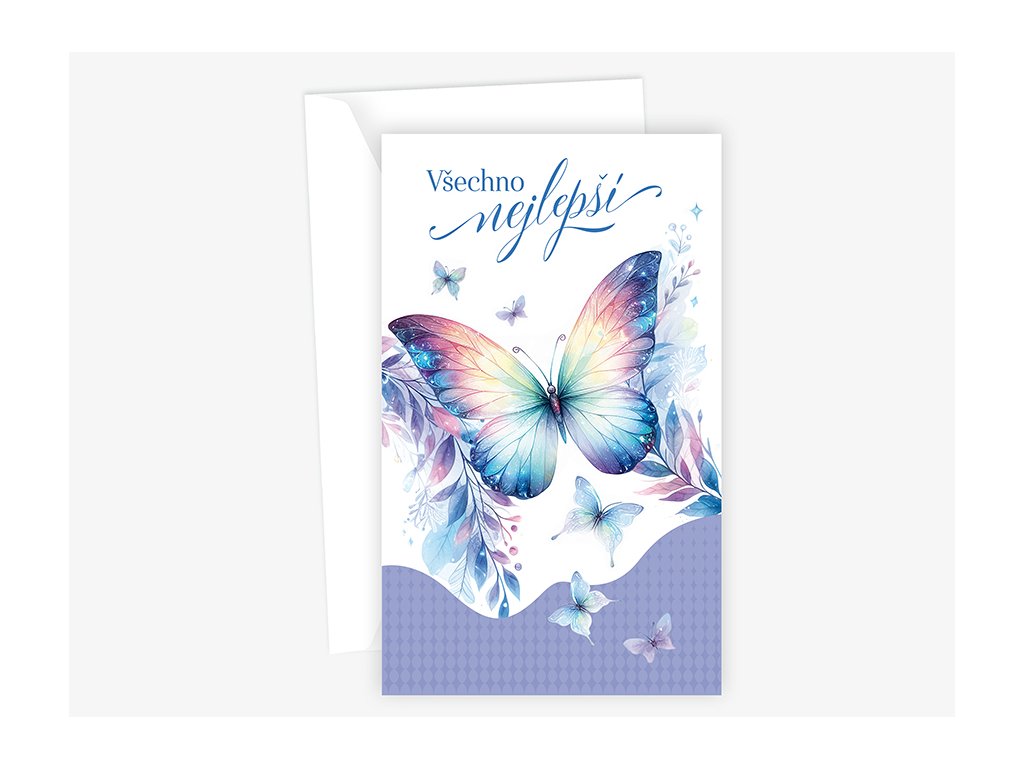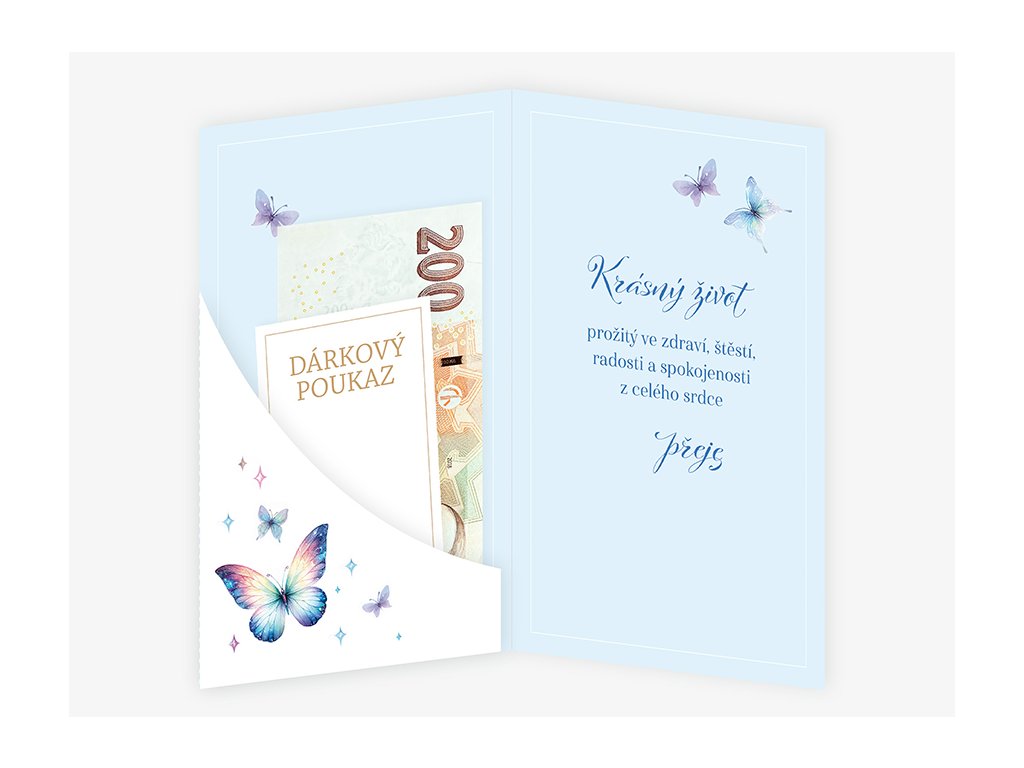 Srdečné blahopřání s kapsou na peníze a textem uvnitř přání. Součástí blahopřání je bílá obálka.