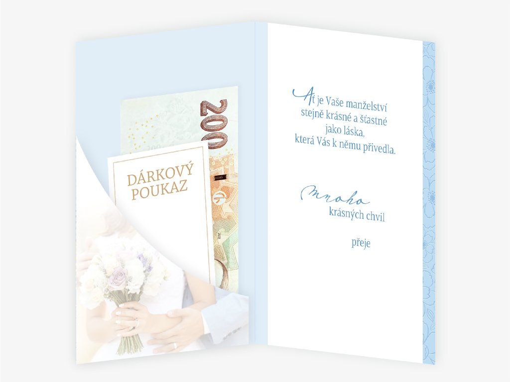 Text uvnitř: Ať je Vaše manželství stejně krásné a šťastné jako láska, která Vás k němu přivedla. Mnoho krásných chvil přeje